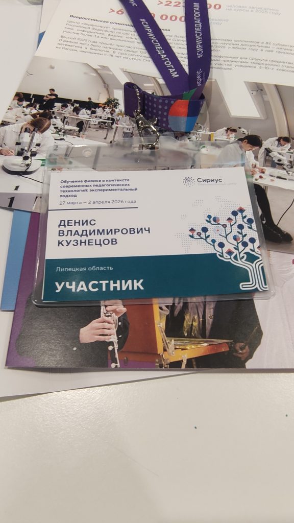 Денис Владимирович Кузнецов, учитель физики Университетской гимназии, успешно прошел обучение по программе повышения квалификации в Образовательном центре «Сириус» в период с 27 марта по 2 апреля.