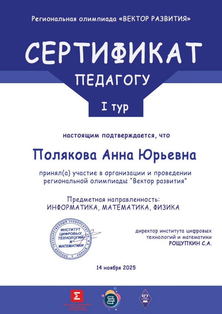 Это событие стало настоящим испытанием для наших обучающихся , но они с честью справились с поставленными задачами, продемонстрировав глубокие знания.Участие в таких масштабных мероприятиях, как региональная олимпиада «Вектор развития», – это не только возможность продемонстрировать свои знания и получить ценный опыт, но и важный шаг на пути к будущим научным открытиям и профессиональным достижениям.